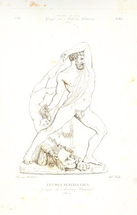 ERCOLE E LICA -- di Canova -- incisione (galleria d'arte moderna, Roma)